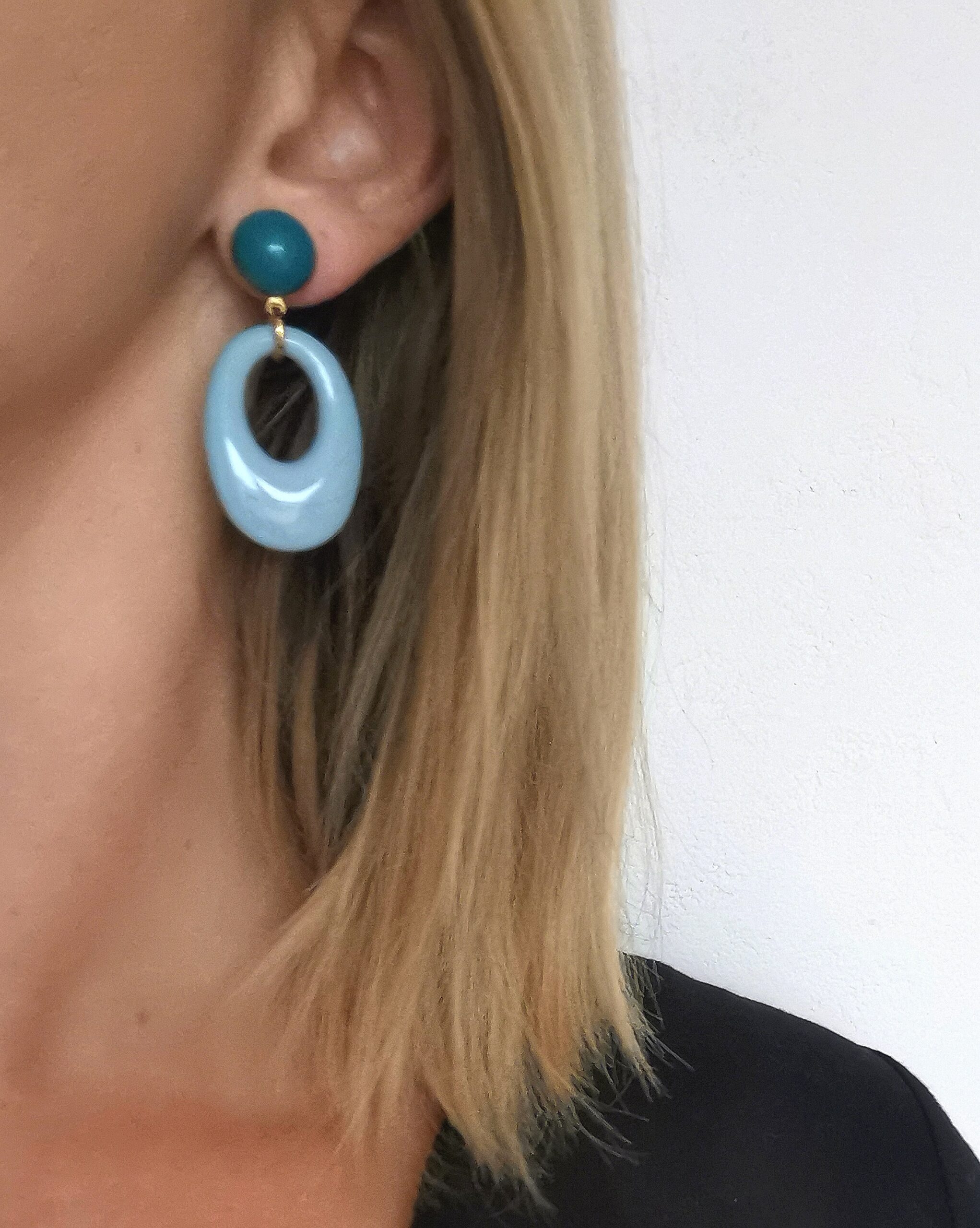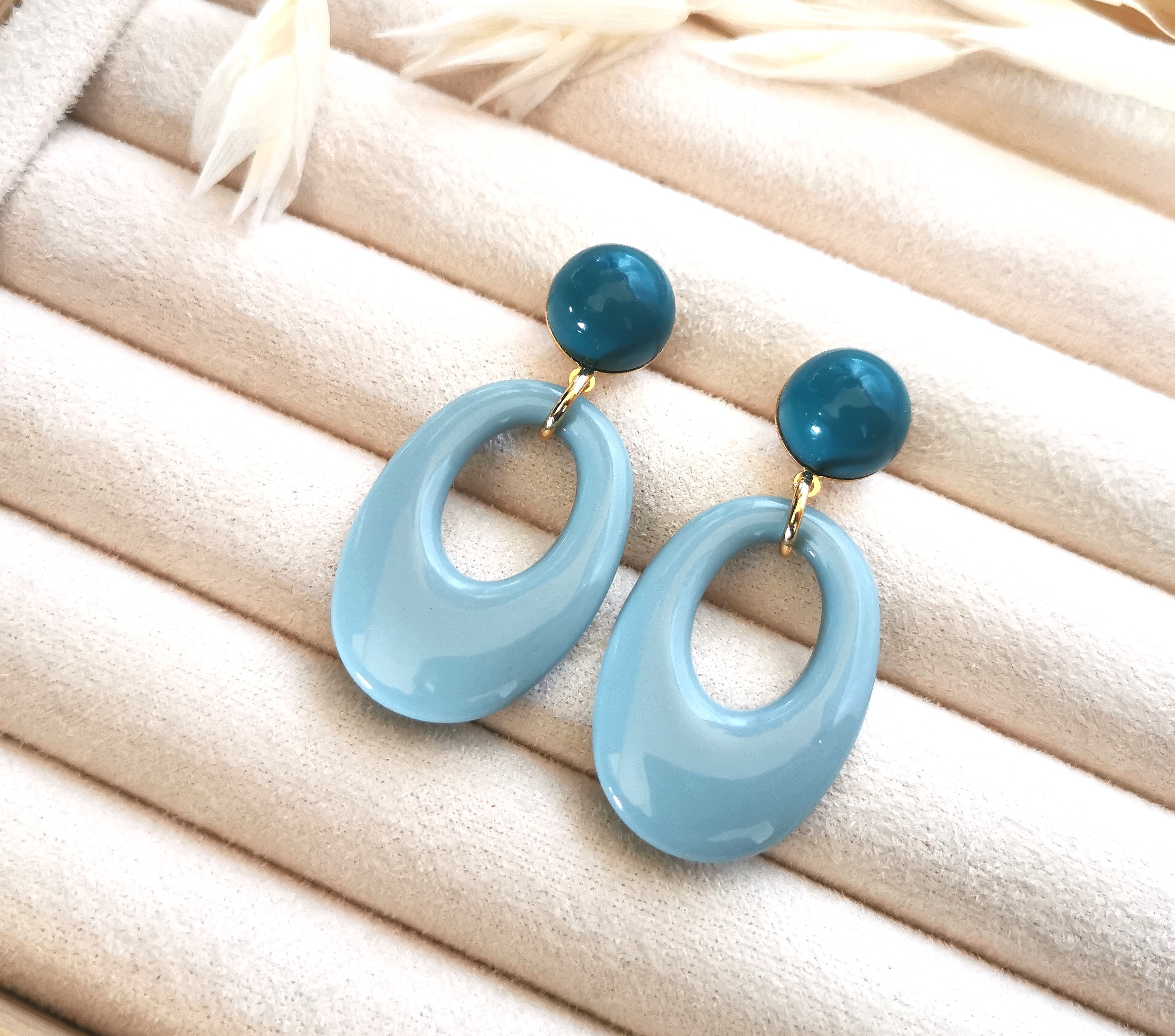 Proposées à clous pour oreilles percées ou à clips pour oreilles non percées (système clips visualisable sur coloris framboise/bois de rose).