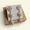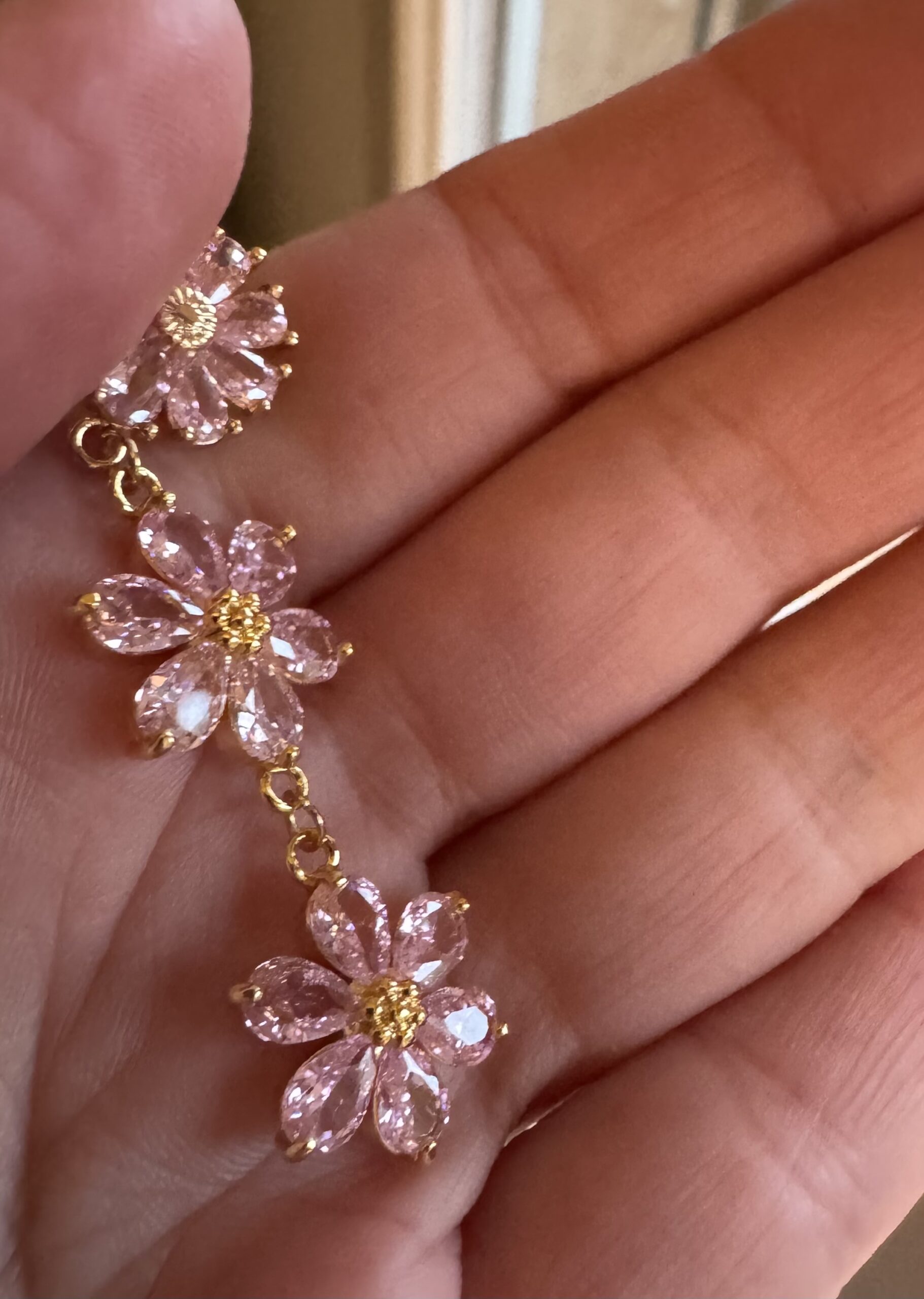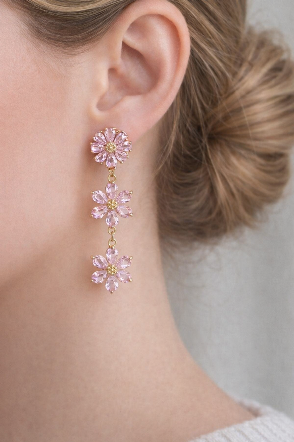 Boucles d’oreilles « Aria ». Apprêts dorés à l’or fin et jolies fleurs en verre facetté. Coloris rose.