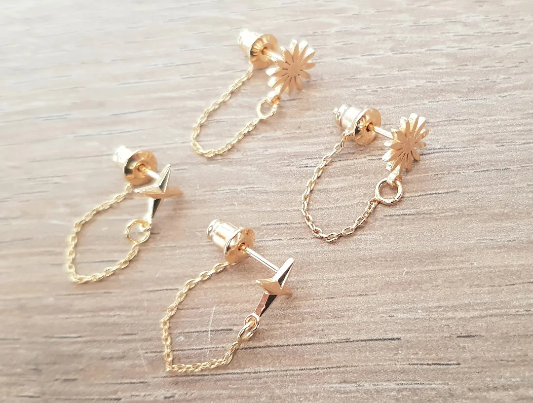Boucles d’oreilles « Céleste » plaquées or. 2,5cm/1g.