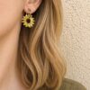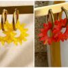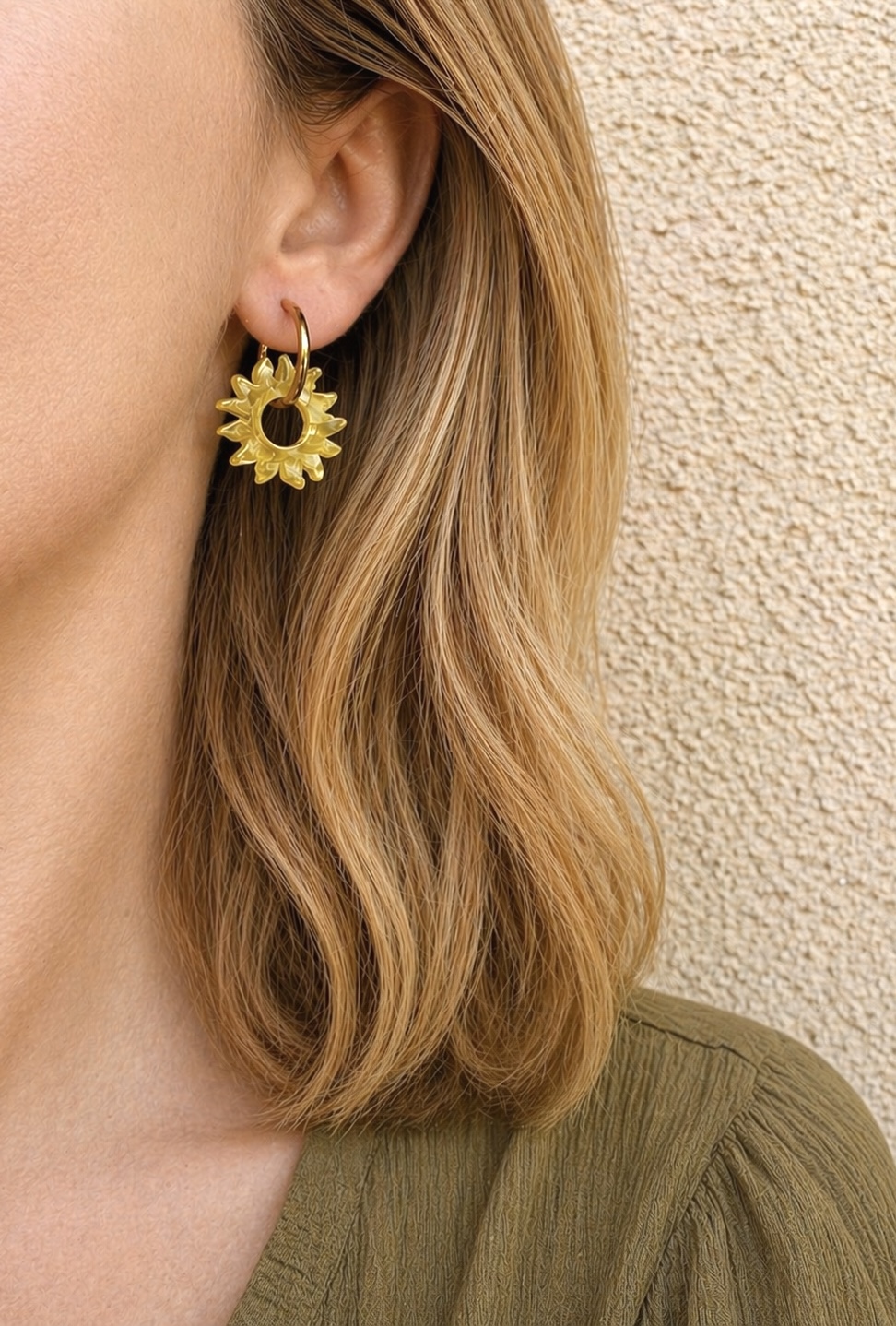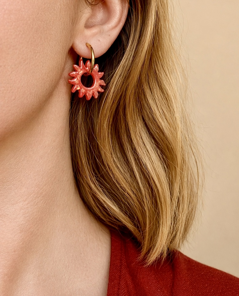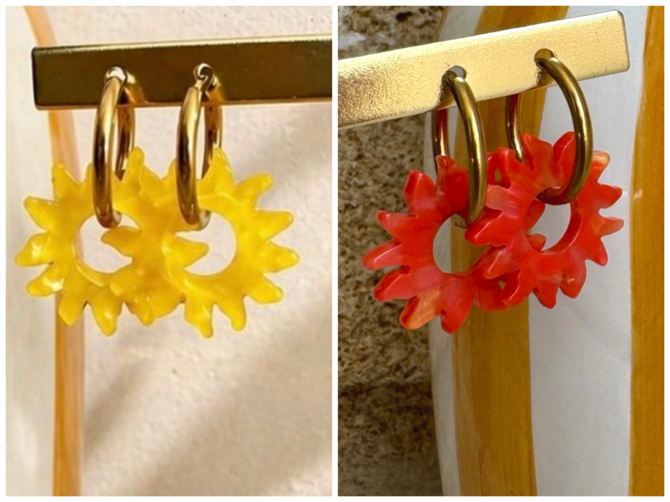 Soleils en acétate et créoles en acier inoxydable.