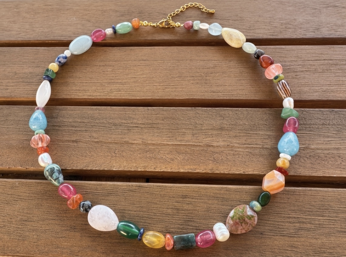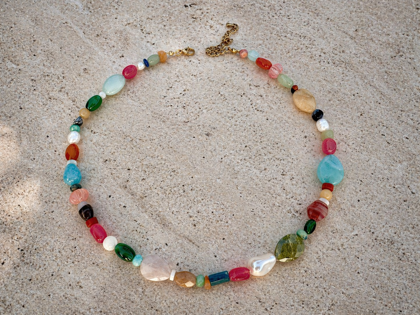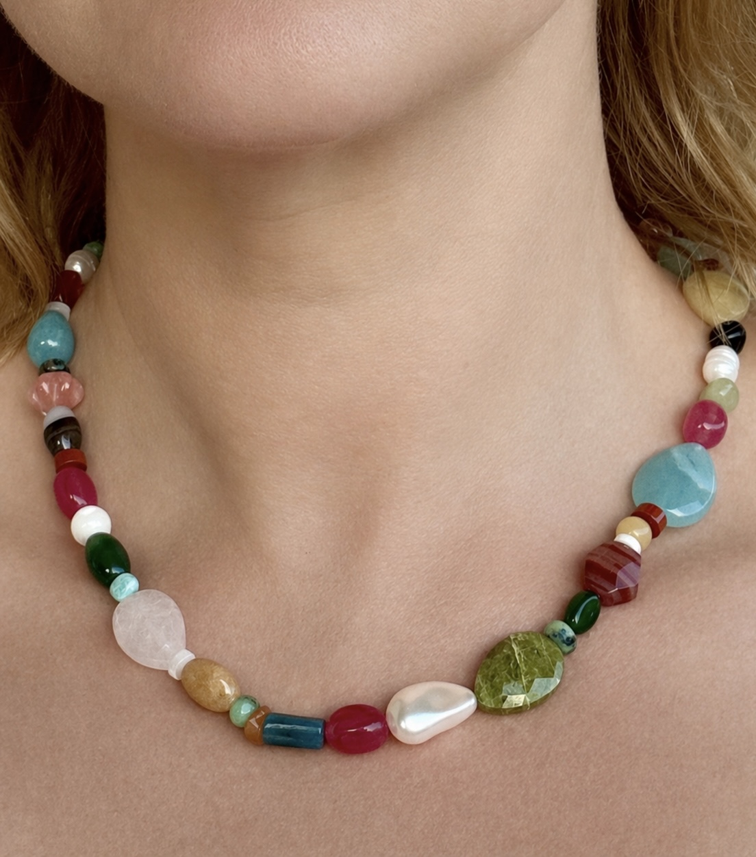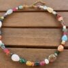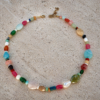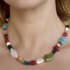 Collier « Iris ». Déclinaison de pierres naturelles de diverses formes et apprêts en acier inoxydable.
