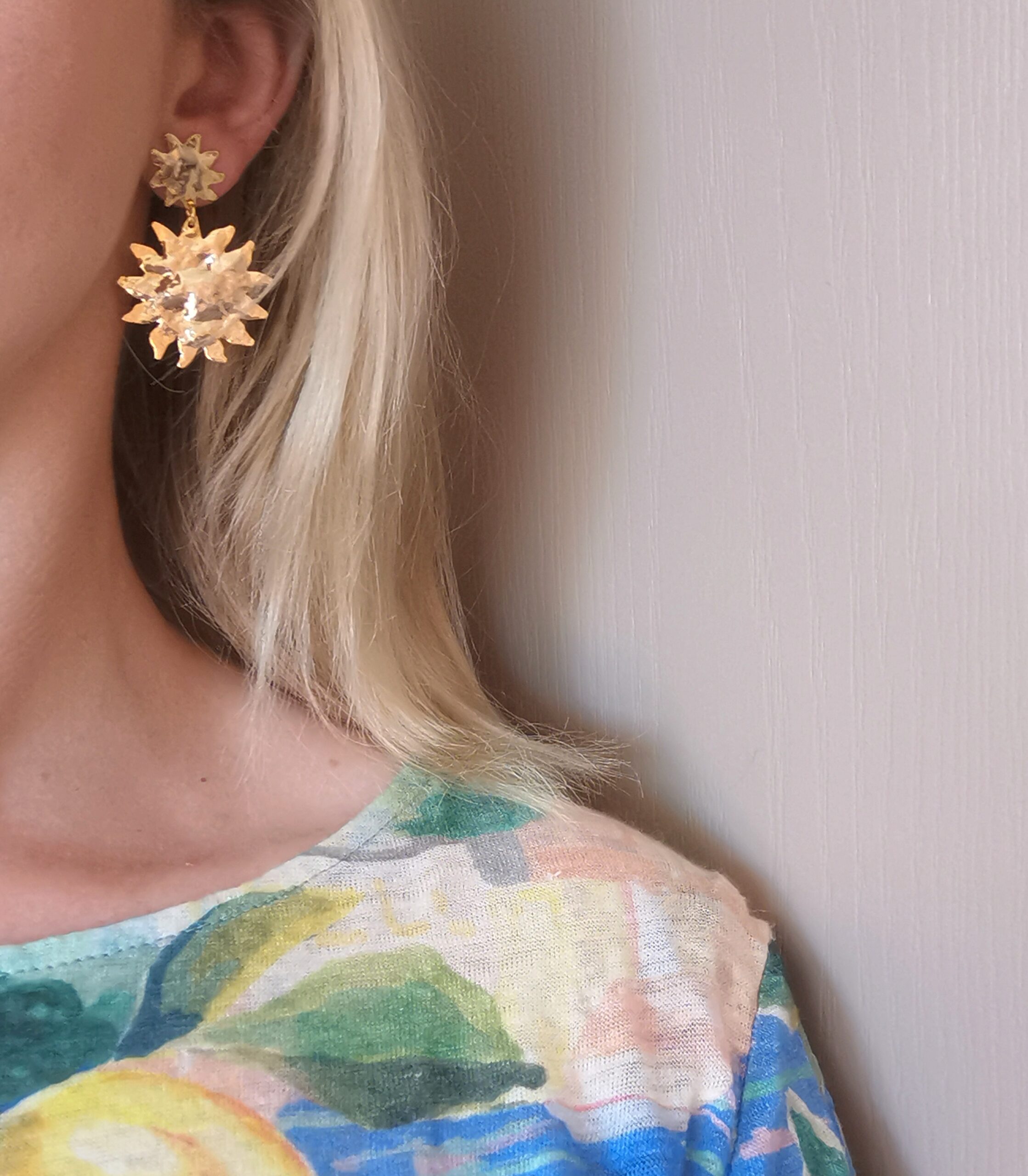 Boucles d’oreilles « Sunny » en laiton doré à l’or fin.